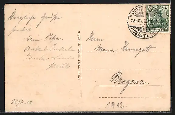 alte Ansichtskarte, gelaufen 1912, guter Zustand