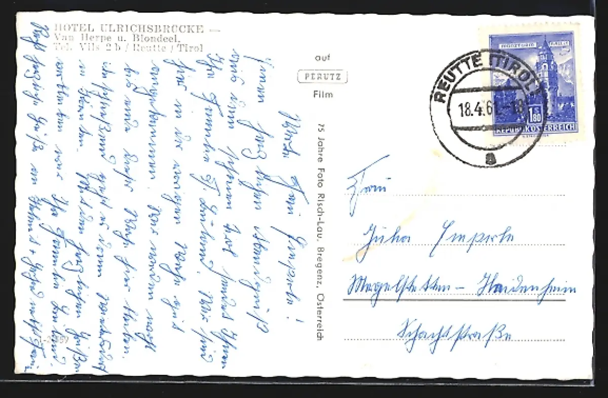 AK Reutte /Tirol, Hotel Ulrichsbrücke, Bes. Van Herpe u. Blondeel