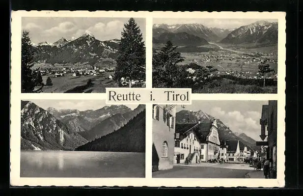 AK Reutte, zwei Ortsansicht, Strassenpartie und Blick auf See