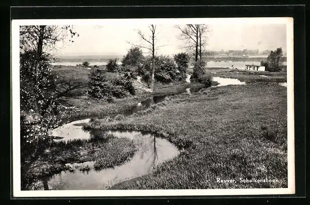 Personenbezogene Daten auf der Rückseite der Karte wurden durch blauen Textmarker unkenntlich gemacht. Die blauen Stellen sind auf die Vorderseite durchgeweicht und wirken sich negativ auf das Postkartenfoto aus
