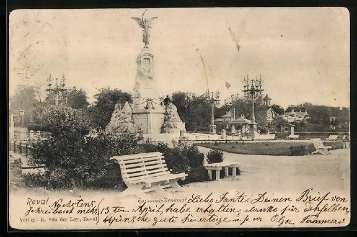 AK Reval, Partie am Russalka-Denkmal, Anlagen mit Ruhebänken
