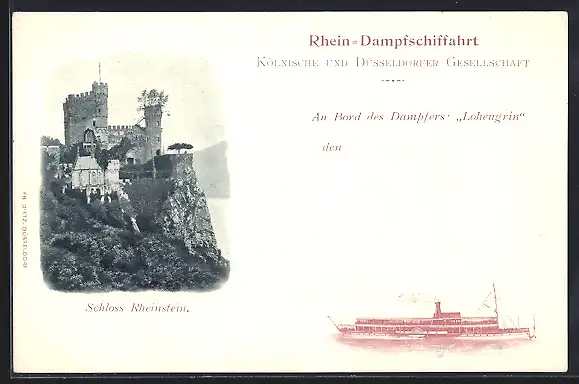 AK Rhein-Dampfer Lohengrin und Schloss Rheinstein