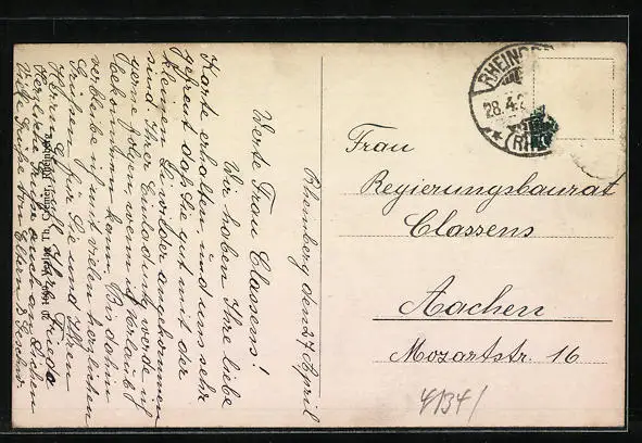 alte Ansichtskarte, gelaufen, Briefmarke entfernt, guter Zustand