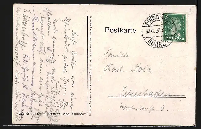 alte Ansichtskarte, gelaufen 1927, guter Zustand
