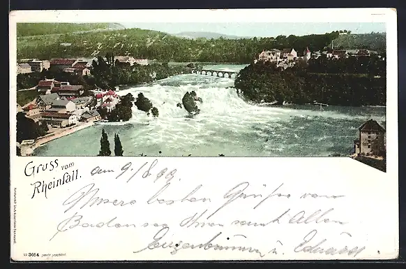 AK Rheinfall, Ortspartie mit Wasserfall