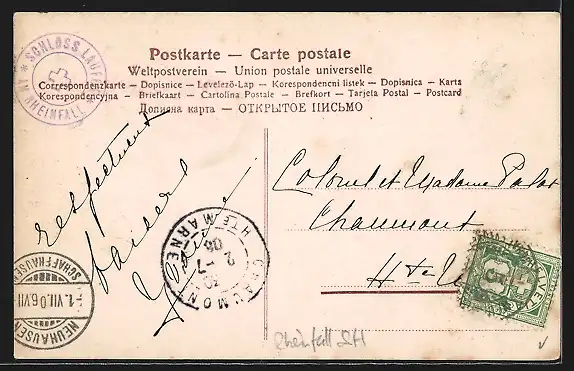 AK Rheinfall, Panorama mit Eisenbahn-Viadukt
