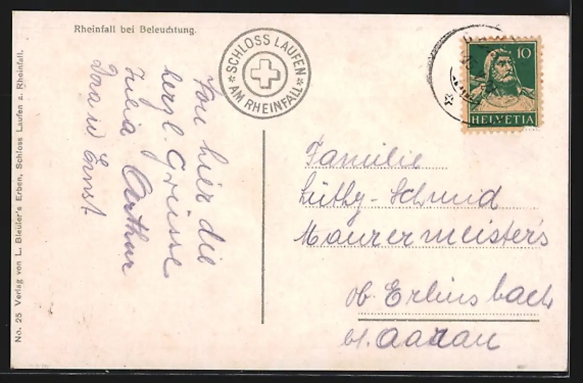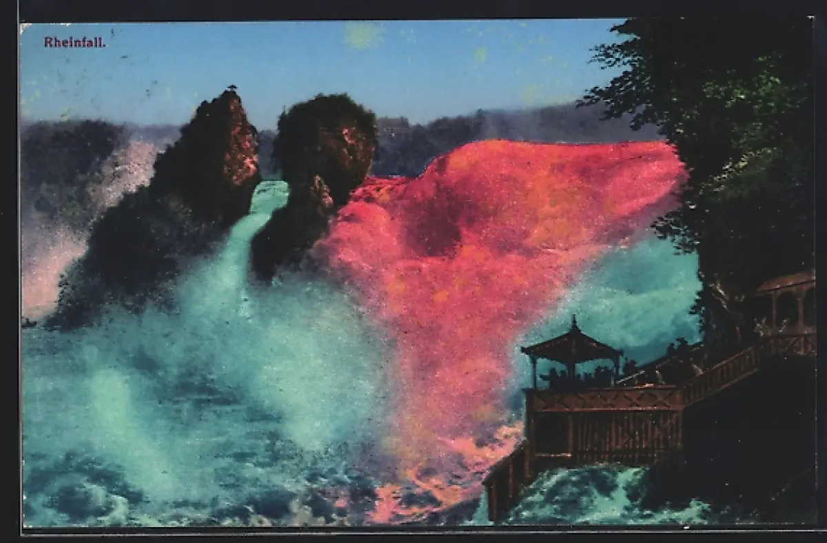 AK Rheinfall, Wasserfall bei Beleuchtung