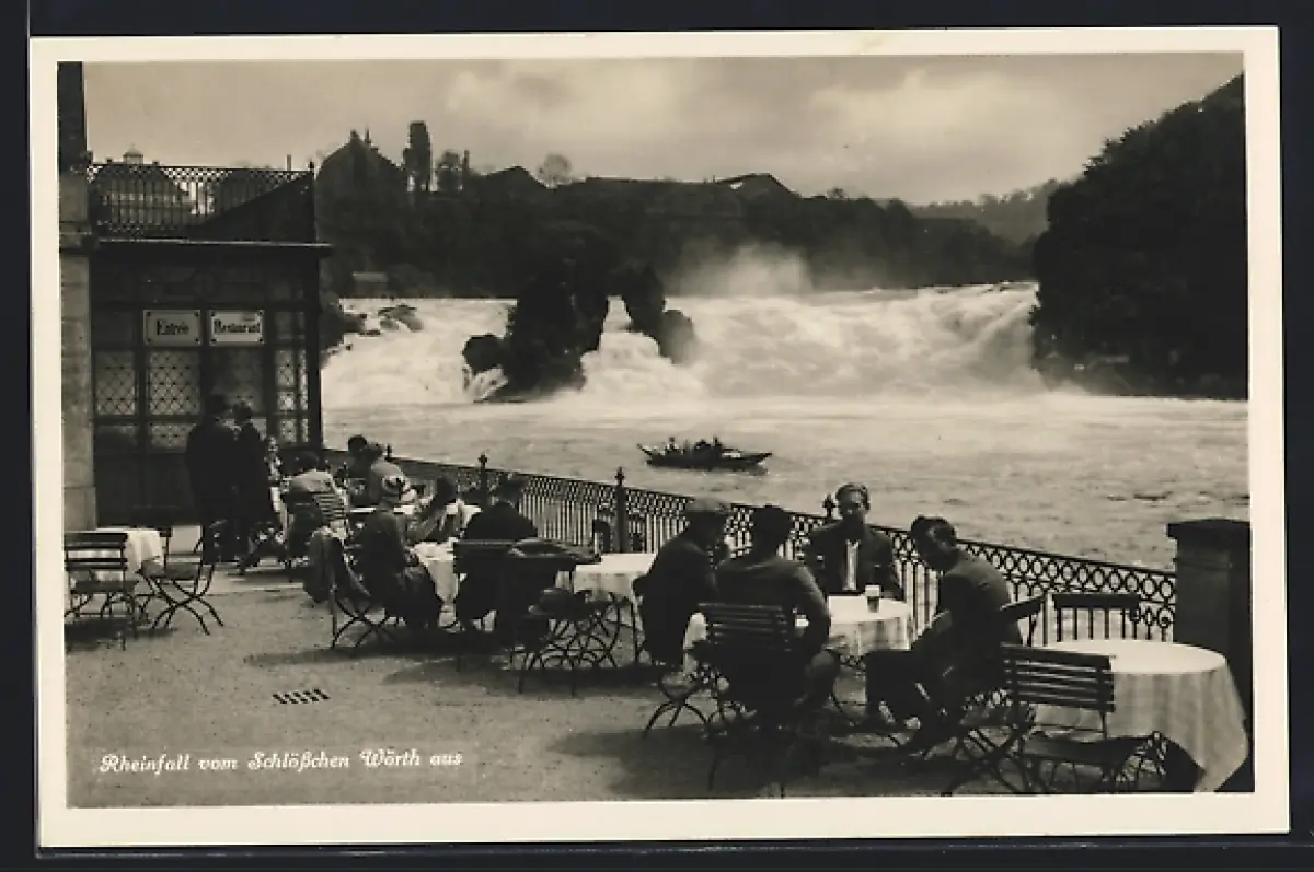 AK Rheinfall, Wasserfall vom Cafe Schlösschen Wörth aus