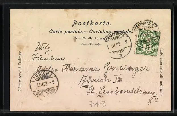 alte Ansichtskarte, gelaufen 1902, guter Zustand