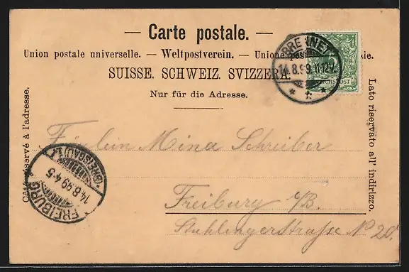 alte Ansichtskarte, gelaufen 1899, guter Zustand