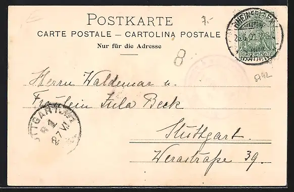 alte Ansichtskarte, gelaufen 1901, guter Zustand