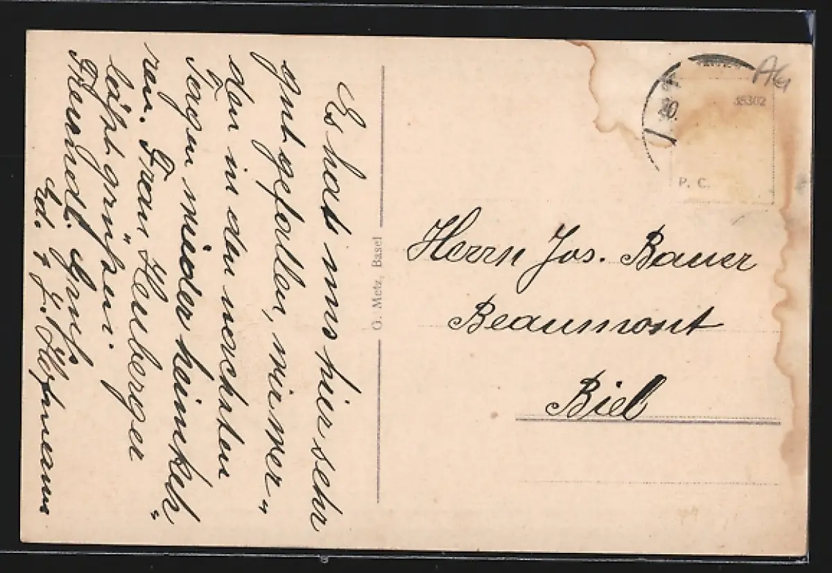 alte Ansichtskarte, gelaufen, Briefmarke entfernt, Abriebspur oben li., guter Zustand