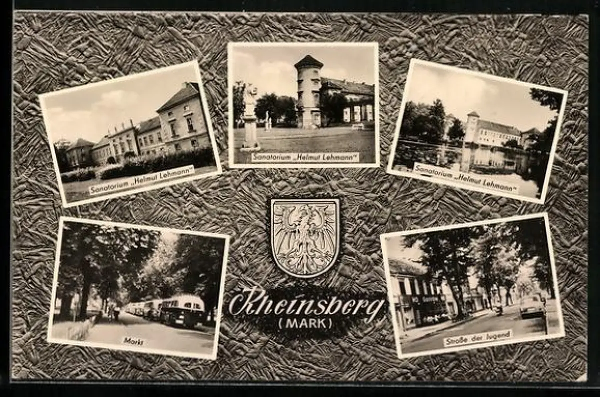 AK Rheinsberg /Mark, Sanatorium Helmut Lehmann, Markt, Strasse der Jugend, Wappen