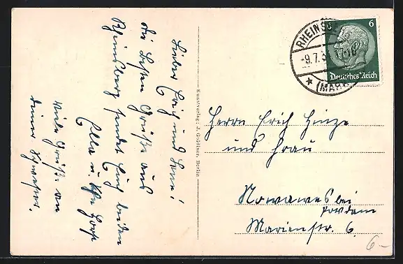 alte Ansichtskarte, gelaufen 1934, minimaler Einriss li. unten, guter Zustand