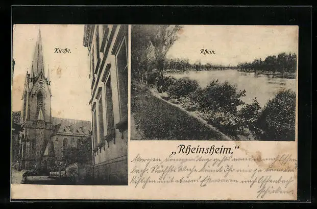 AK Rheinsheim, Blick auf Kirche und Rhein