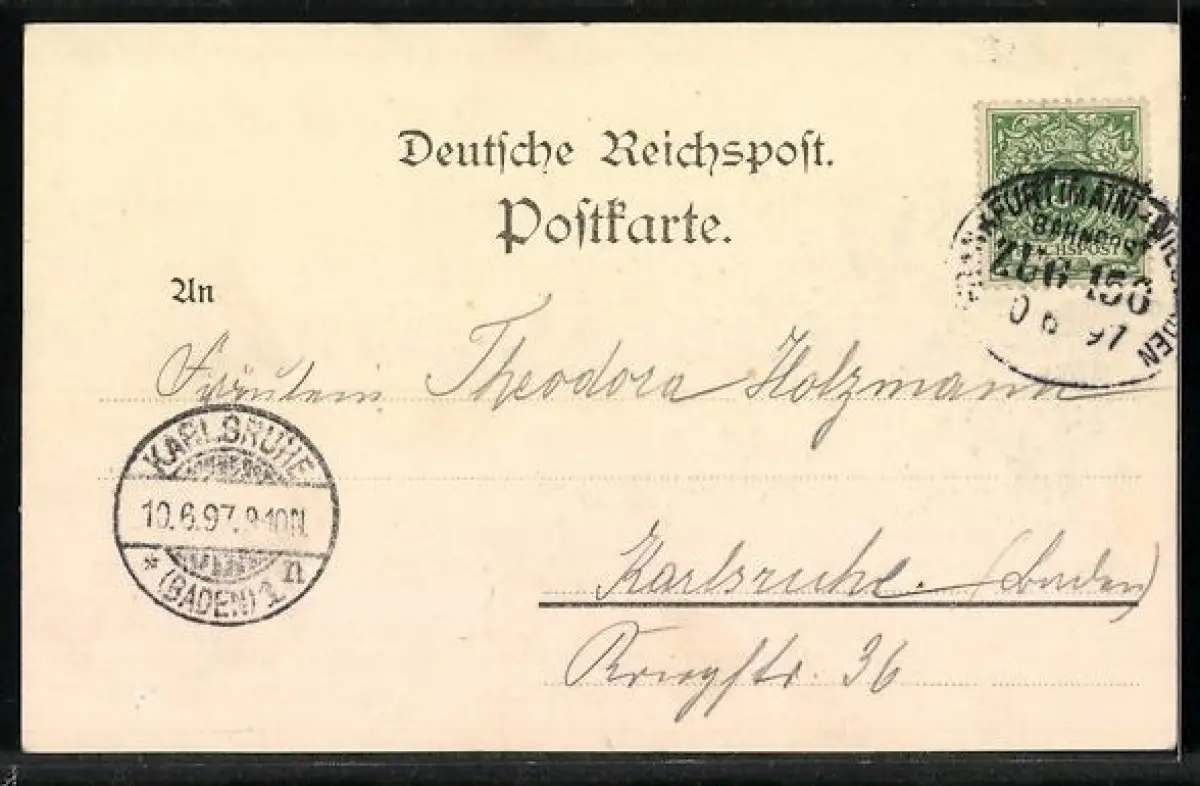 alte Ansichtskarte, gelaufen 1897, Stempelspur, guter Zustand