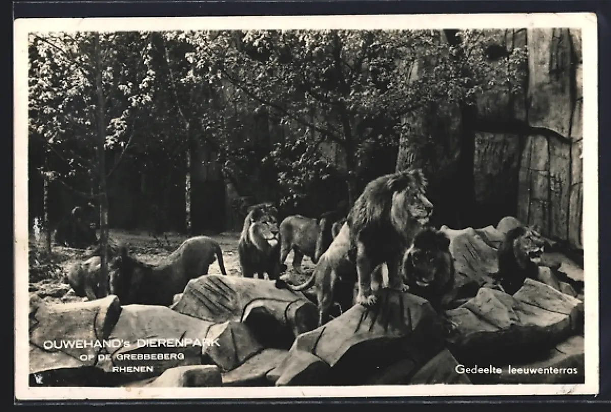 AK Rhenen, Ouwehands Dierenpark op de Grebbeberg, Gedeelte leeuwenterras, Löwen im Zoo