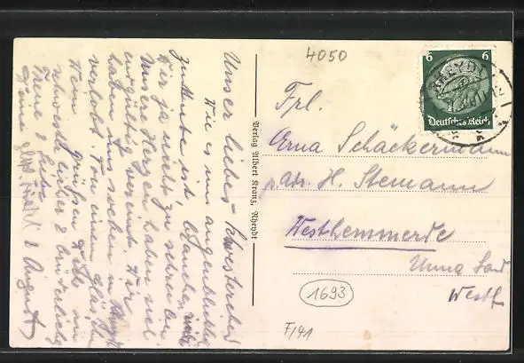 alte Ansichtskarte, gelaufen 1934, vertikaler Mittelbug, guter Zustand