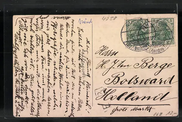 alte Ansichtskarte, gelaufen 1912, Stempelspur, Abriebspur, guter Zustand