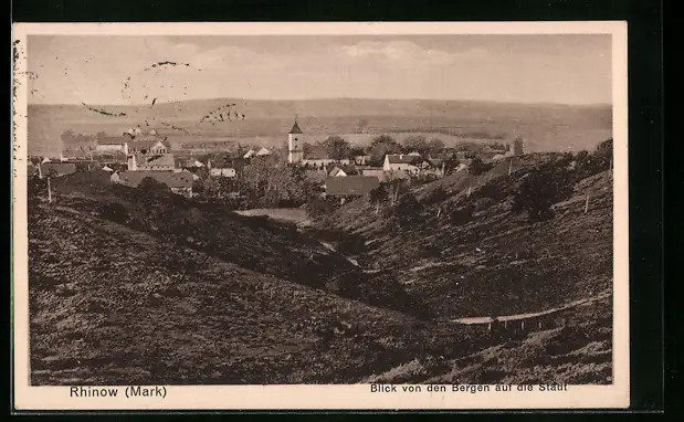 AK Rhinow i. Mark, Blick von den Bergen auf die Stadt