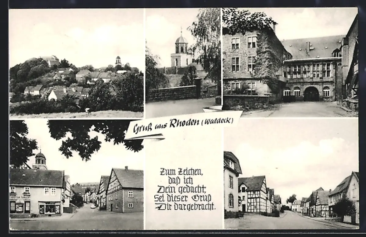 AK Rhoden /Waldeck, Ortsansicht, Kirche, historische Gebäude