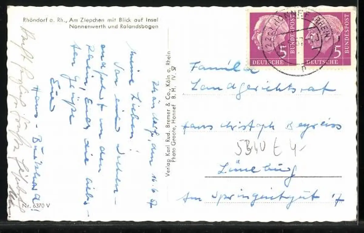 AK Rhöndorf a. Rh., Am Ziepchen, Blick auf Insel Nonnenwerth und Rolandsbogen