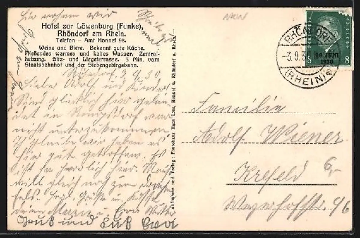AK Rhöndorf am Rhein, Hotel zur Löwenburg