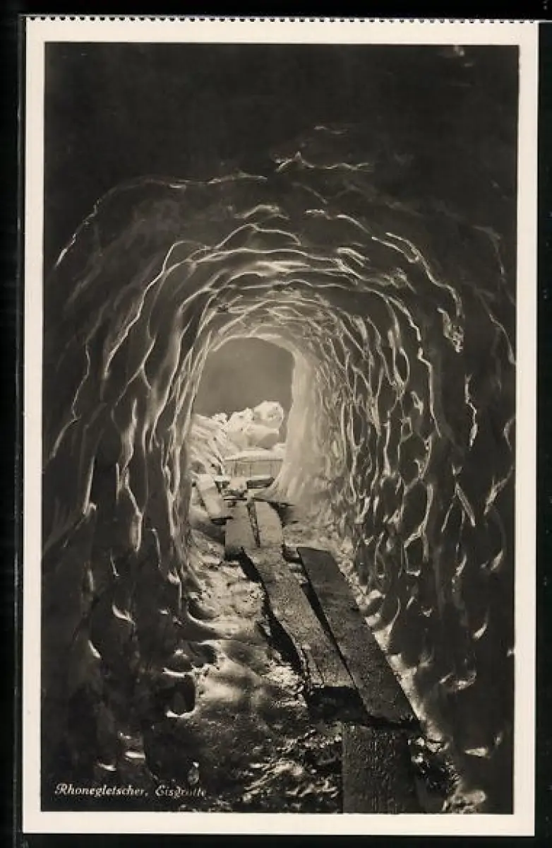 AK Rhonegletscher, Blick aus der Eisgrotte
