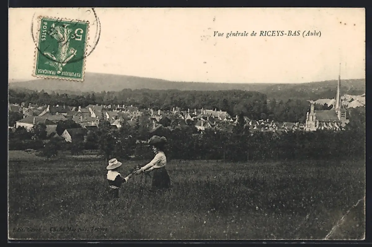 AK Riceys-Bas /Aube, Vue générale avec une mère et son enfant dans un champ