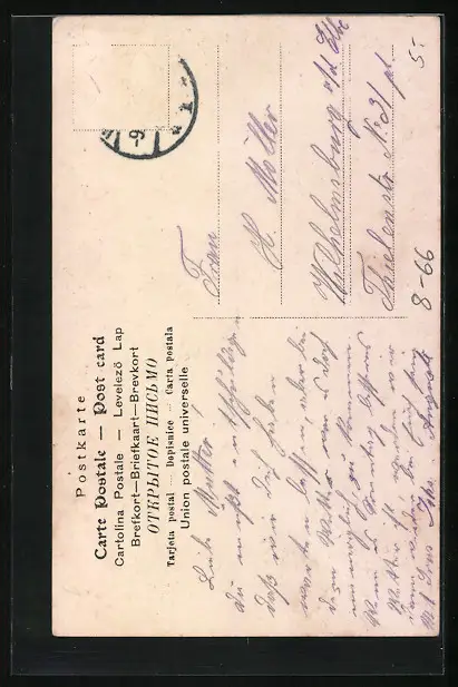 alte Ansichtskarte, gelaufen, Briefmarke entfernt, rückseitig Oberflächenschaden, Eckknicke oben, guter Zustand