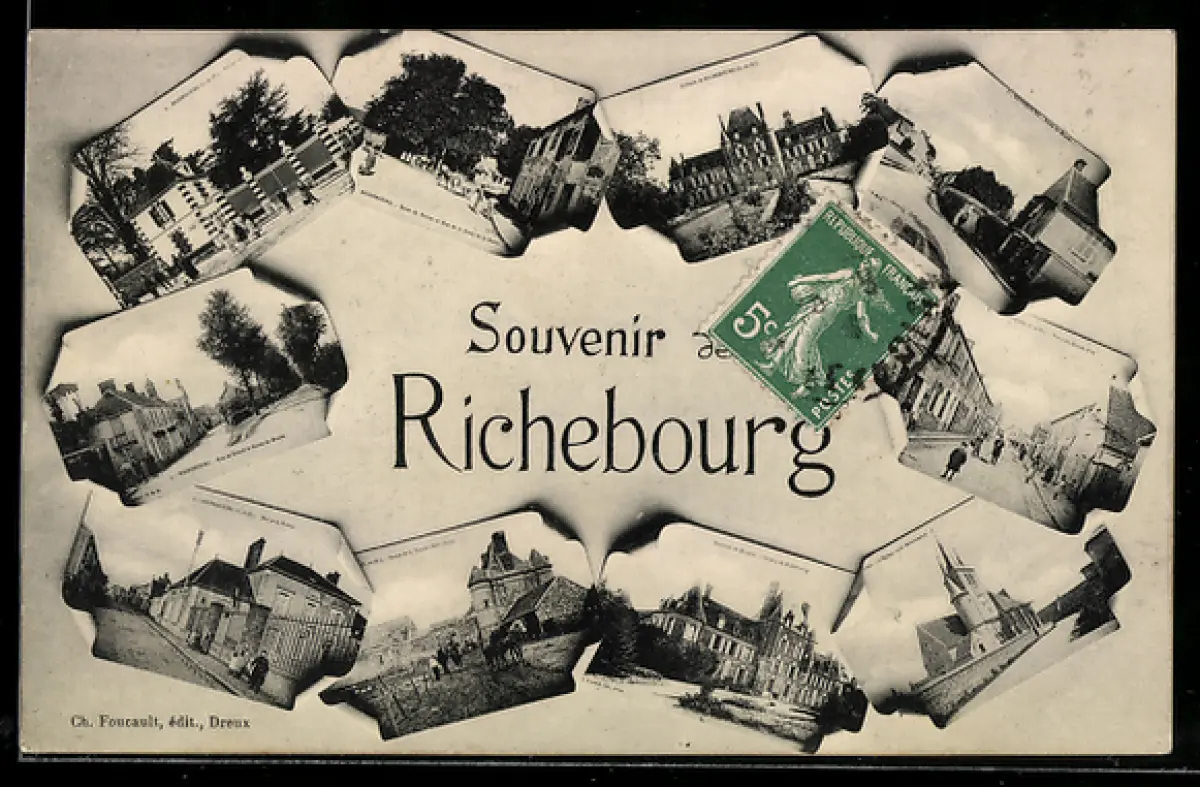 AK Richebourg, Souvenir, Postkarten mit Ortspartien