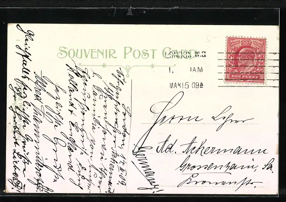 alte Ansichtskarte, gelaufen 1909, guter Zustand