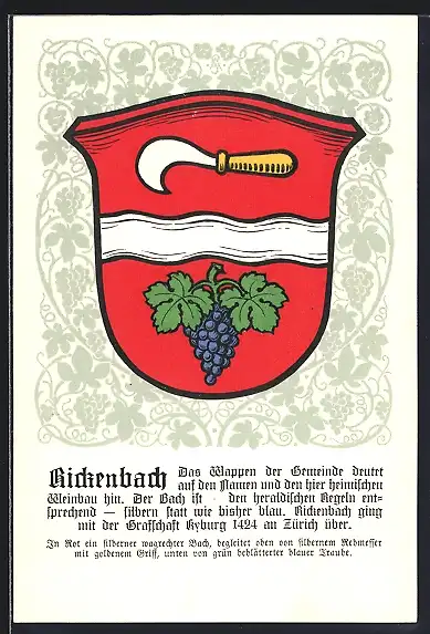 AK Rickenbach, Wappen auf Weintrauben-Ornamenten, Info-Text