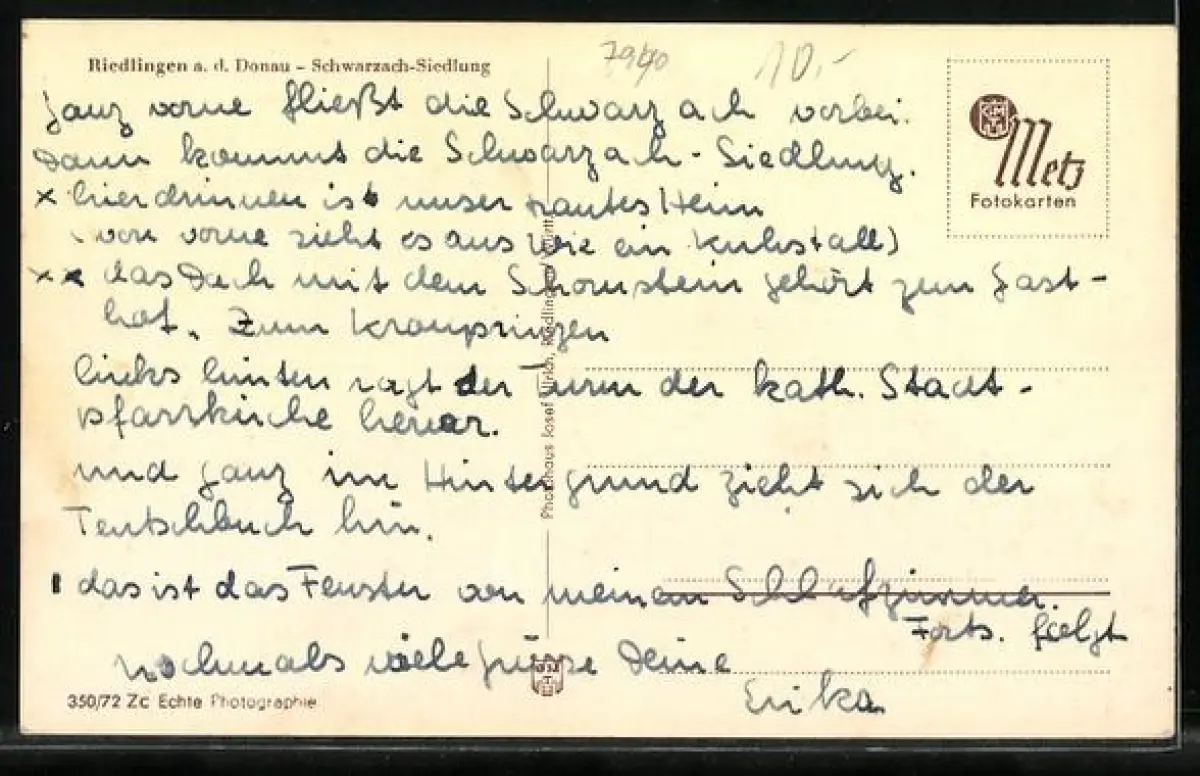 AK Riedlingen a. d. Donau, Schwarzach-Siedlung aus der Vogelschau