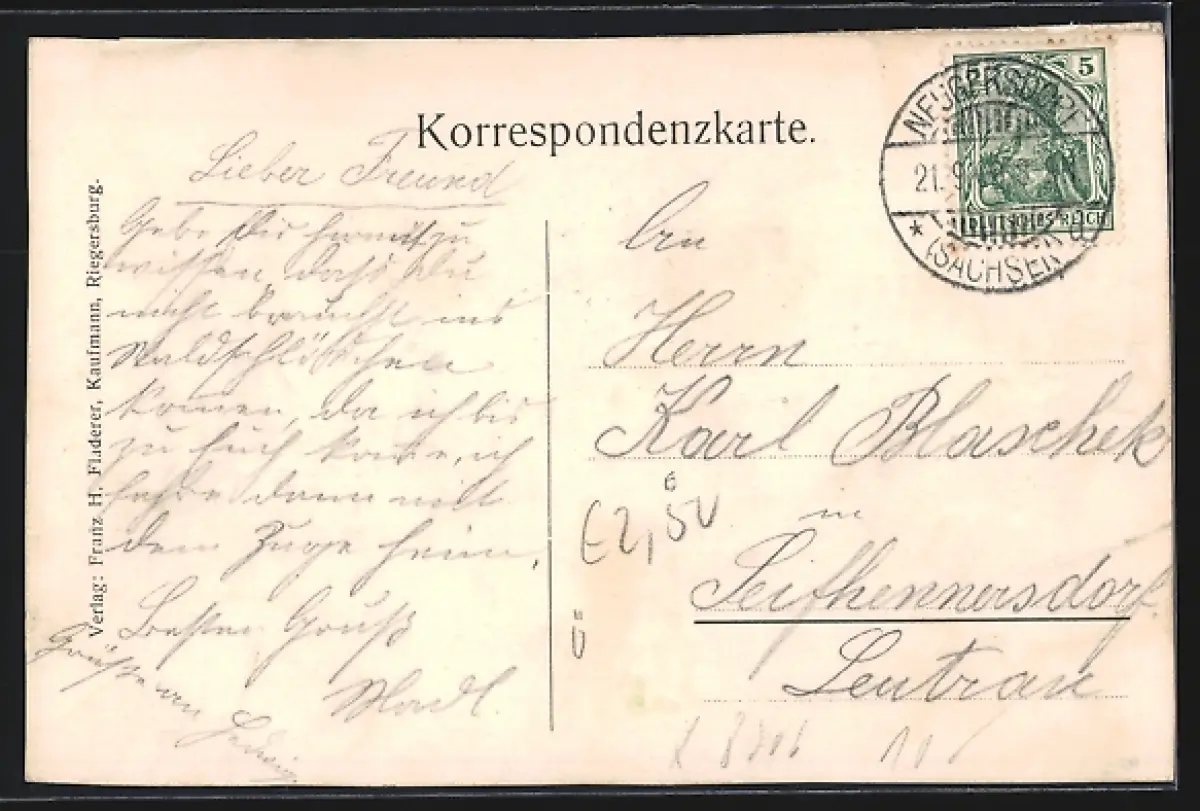 alte Ansichtskarte, gelaufen 1909, guter Zustand