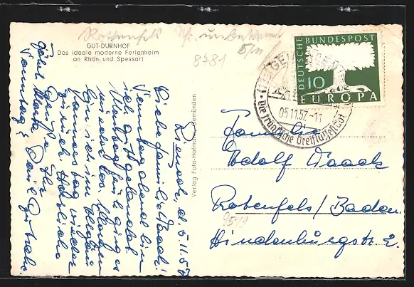 gelaufen 1957, Eckknick oben li., guter Zustand