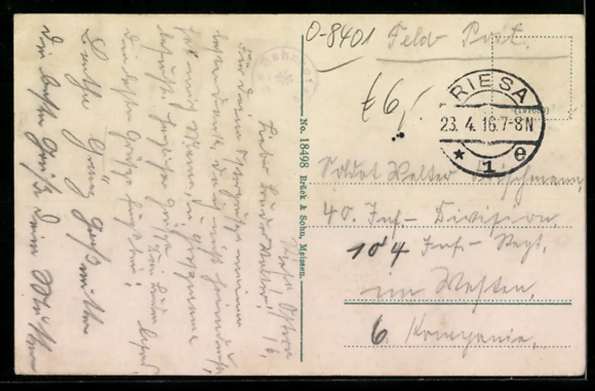 gelaufen 1916, Abriebspuren rechts oben u. unten, Eckknick oben rechts, guter Zustand