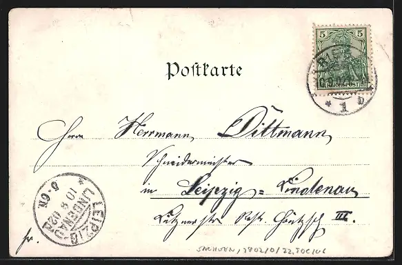 alte Ansichtskarte, gelaufen 1902, Einriss oben mittig, guter Zustand