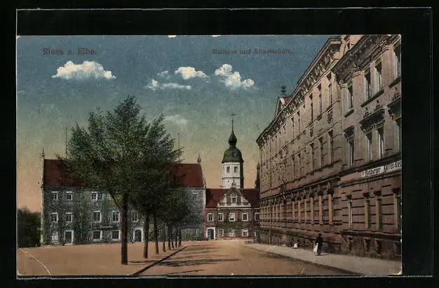 AK Riesa a. Elbe, Rathaus und Albertschule