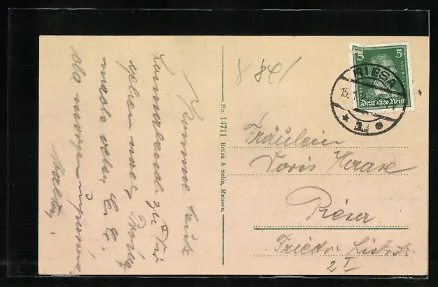 gelaufen 1927, Eckknick li. unten, guter Zustand