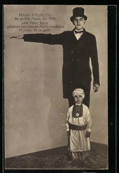 AK Riese Hans Helmuth und Liliputaner Prinz Egon