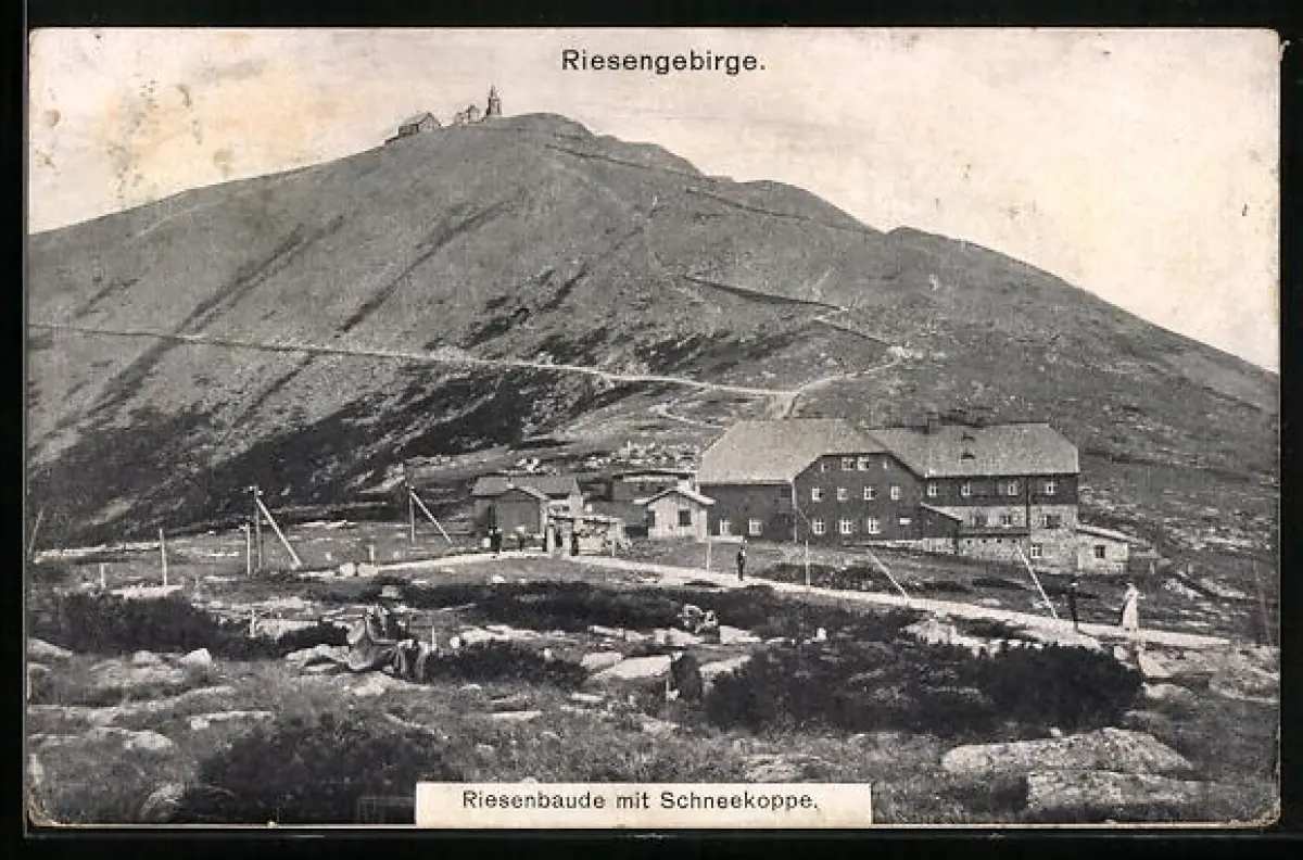 AK Riesenbaude /Riesengebirge, Riesenbaude mit Schneekoppe