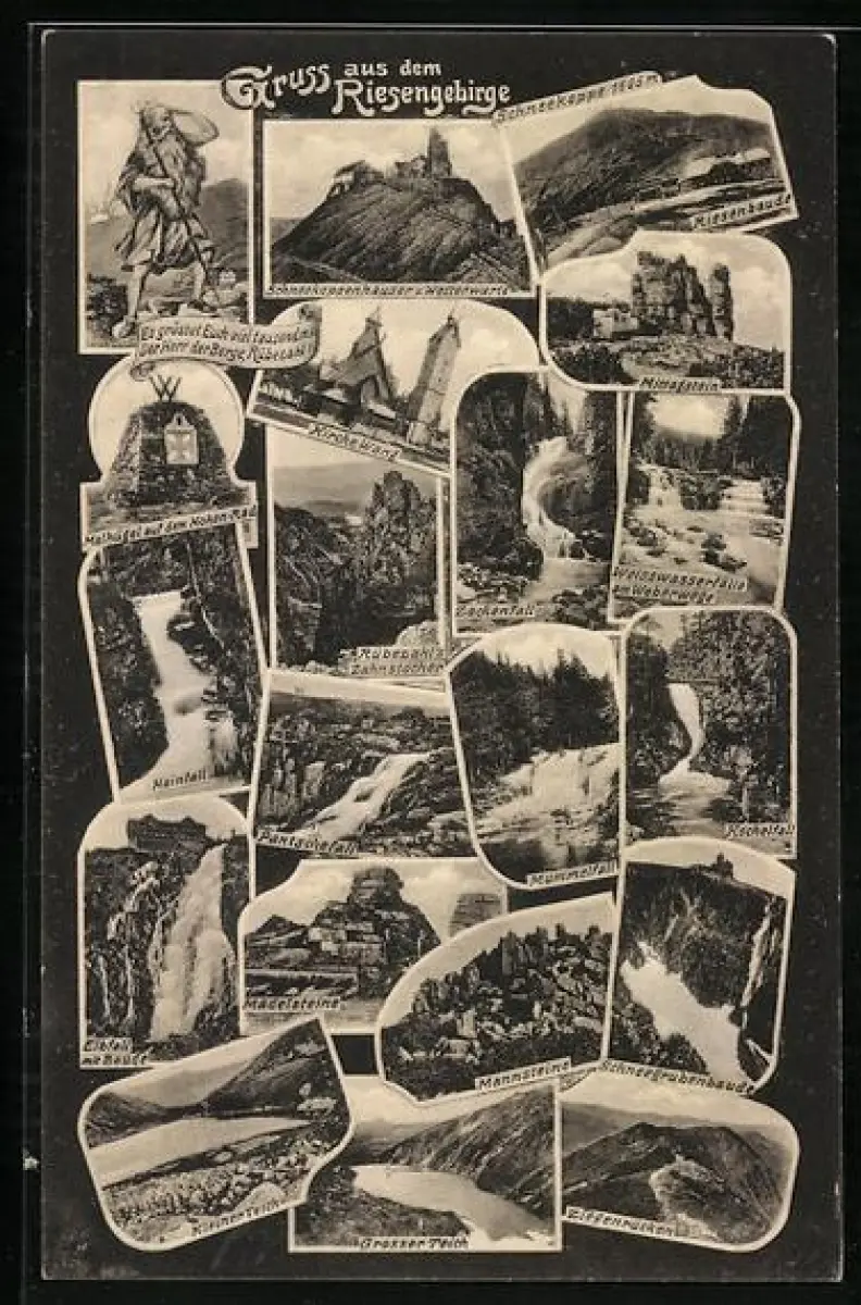 AK Riesengebirge, Pantschefall, Riesenbaude, Mannsteine, Hainfall