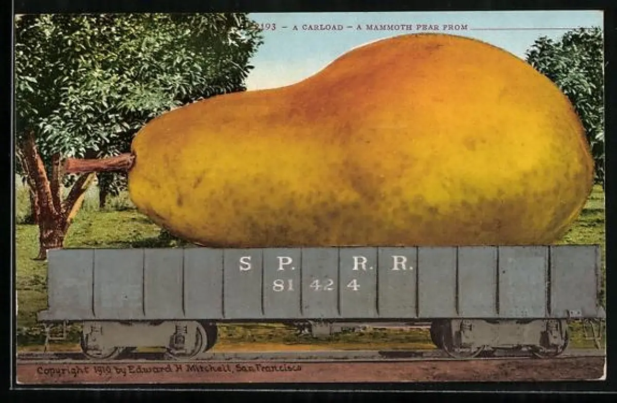 AK Riesige Birne wird mit einem Eisenbahnwaggon transportiert, optische Täuschung