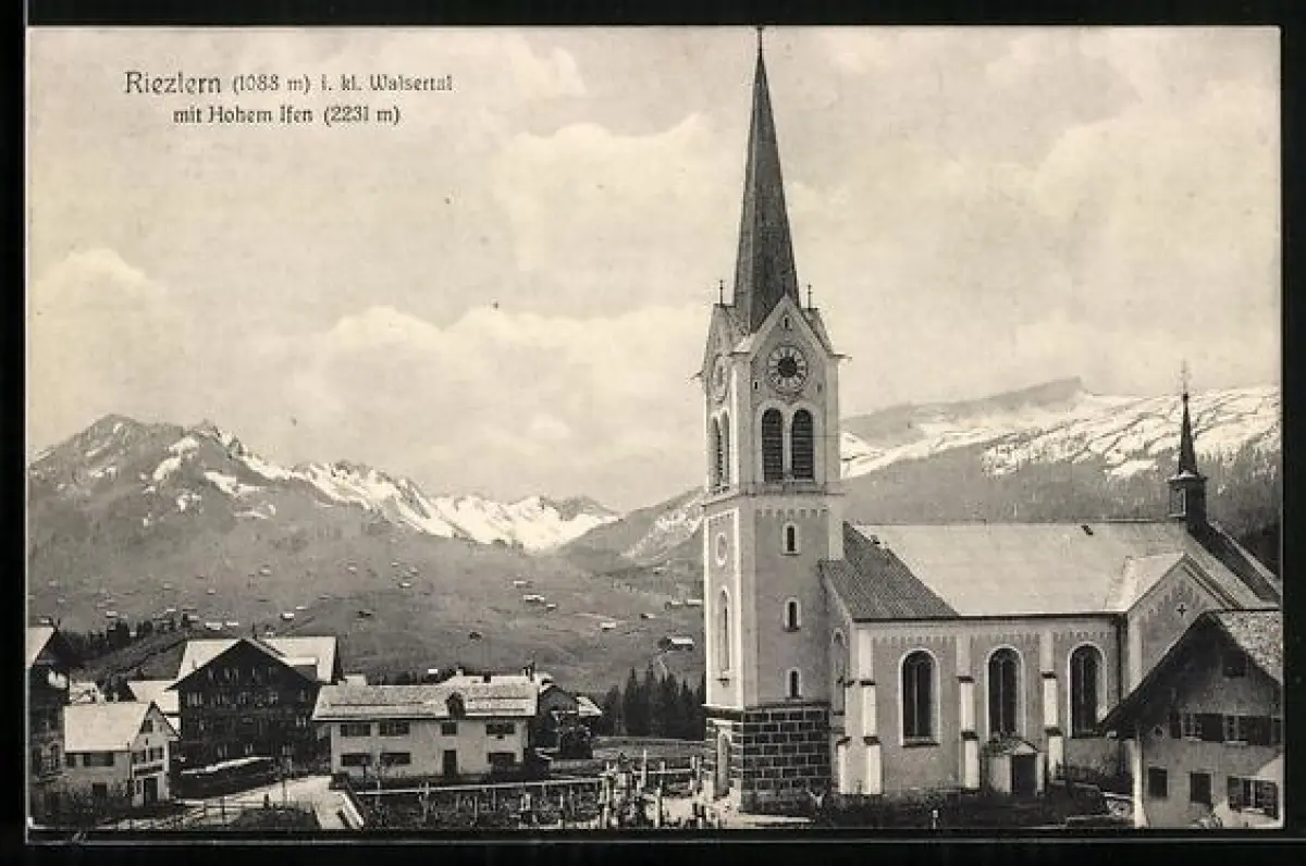 AK Riezlern i. kl. Walsertal, Kirche mit Hohem Ifen