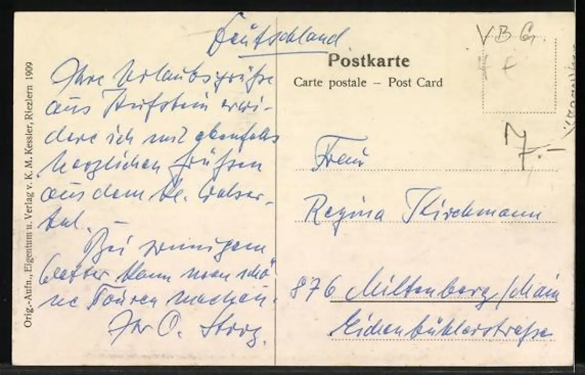alte Ansichtskarte, gelaufen, Briefmarke entfernt, guter Zustand