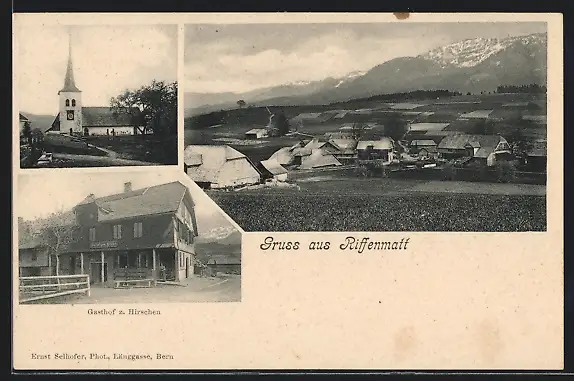 AK Riffenmatt, Gasthof zum Hirschen, Kirche, Teilansicht