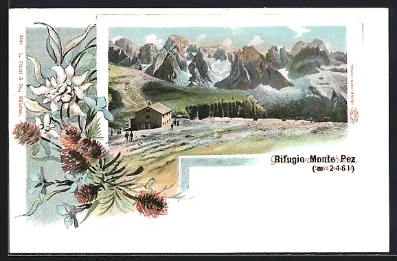 AK Rifugio Monte Pez, Gesamtansicht mit Gebirgswand