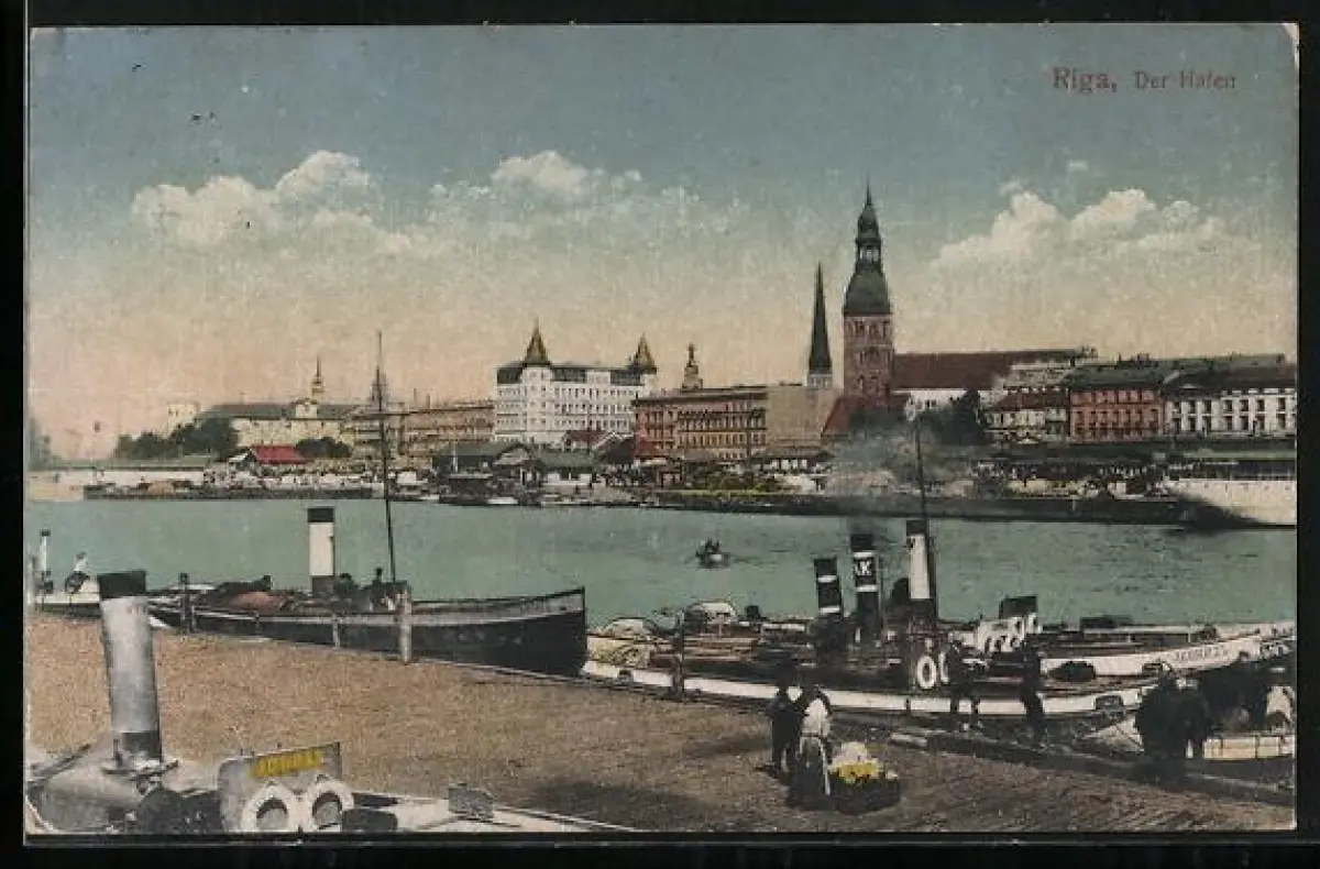 AK Riga, Der Hafen mit Dampfern