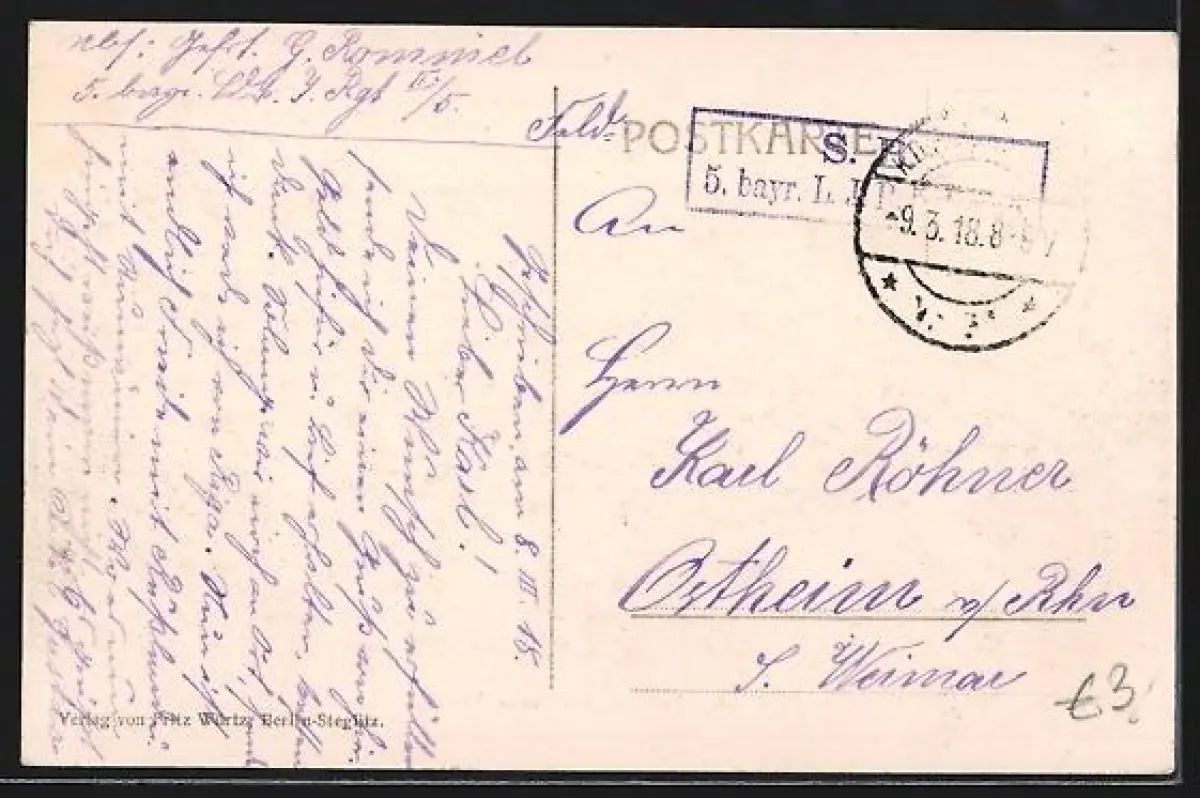 alte Ansichtskarte, gelaufen 1918 als Feldpost, guter Zustand